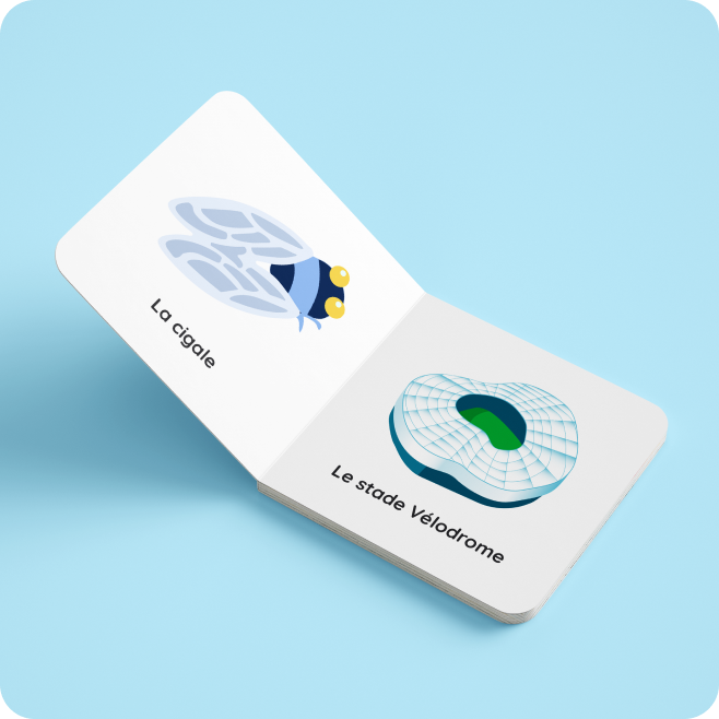 L'imagier de Toulouse est un ouvrage imprimé sur un papier Alaska 330g cartonné et labellisé FSC. L'impression et le façonnage en carré dos collé d'une grande qualité a été réalisé en Europe par une ancienne imprimerie qui maitrise ce savoir-faire depuis plus de 40 ans. Nous proposons un pelliculage brillant non nocif pour les enfants sur l'ensemble de l'ouvrage